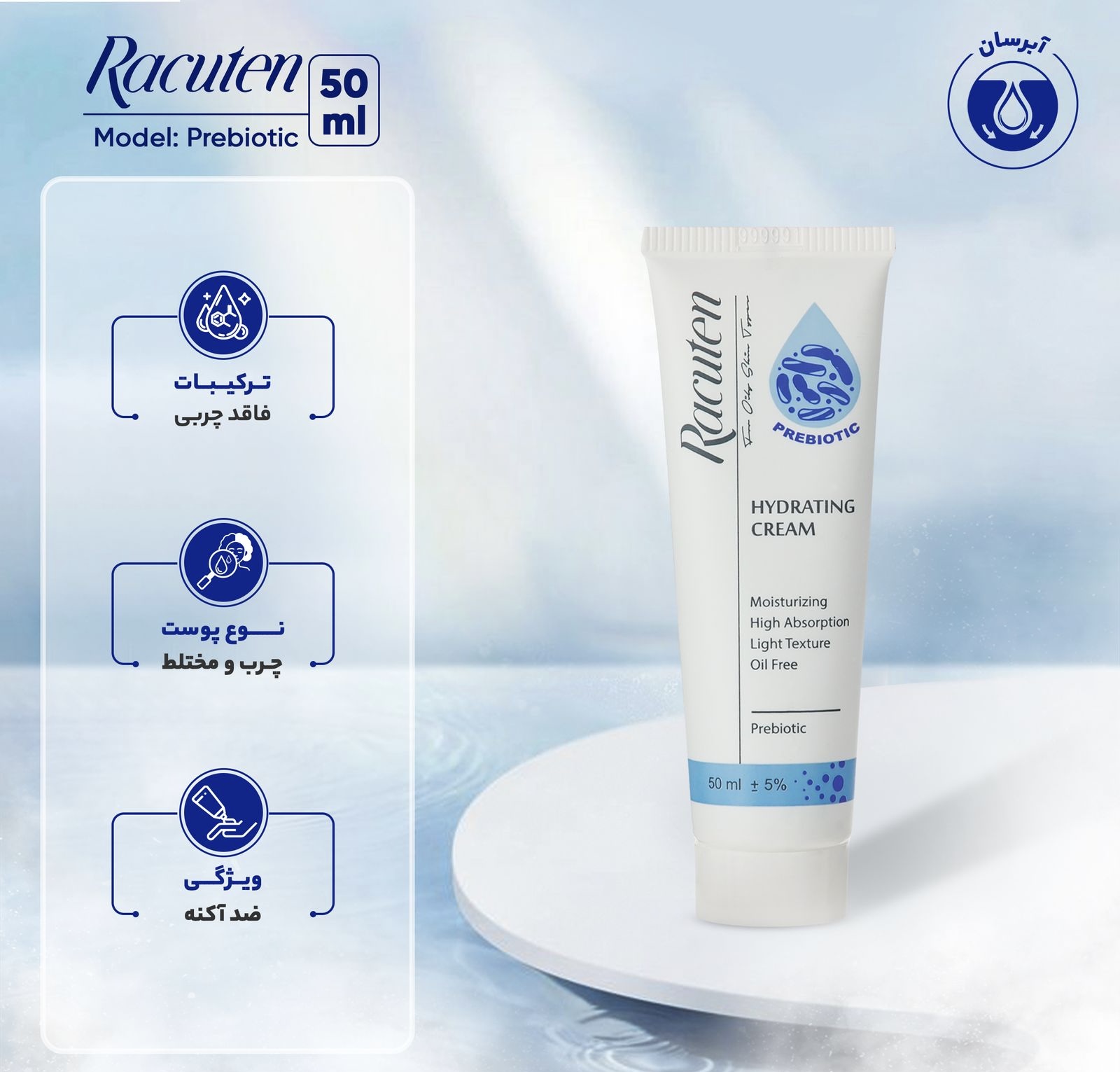 کرم آبرسان راکوتن مناسب پوست چرب و مختلط حجم 50 میل